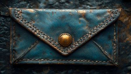Vintage Handmade Leather Envelope on Blue Background Timeless Rustic Design for Letters, Documents, and Gifts Unique Artisan Craftsmanship with Distinct Texture and Warm Tones for Elegant Presentation AI Generative