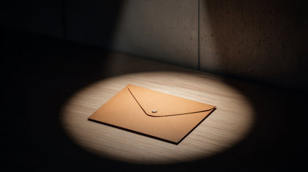 Mysterious Envelope Under Spotlight in Dark Room. Generative