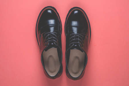 Black shoes on pink background