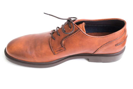 Male brown leather shoes on white background, isolated product.