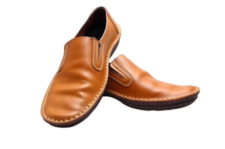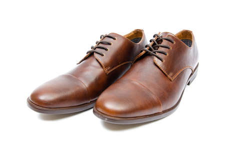 brown leather shoes insulated in white background