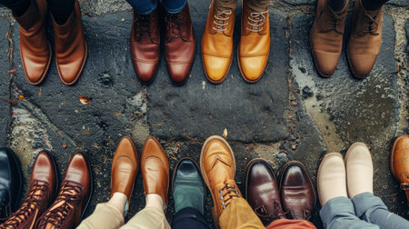 A diverse group of individuals in business shoes standing closely together, forming a tightly knit and unified community.
