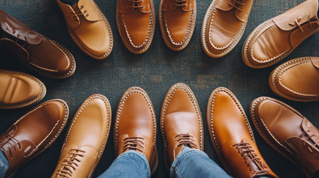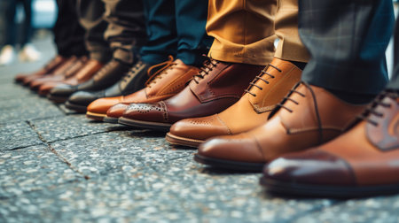 Men shoes in a raw. Created with Generative AI technology.