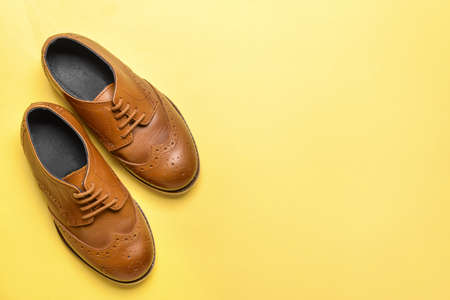 Leather men's shoes on yellow background