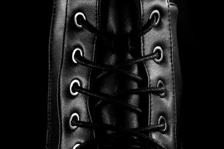 Close up of detail shoelaces on the shoes, macro