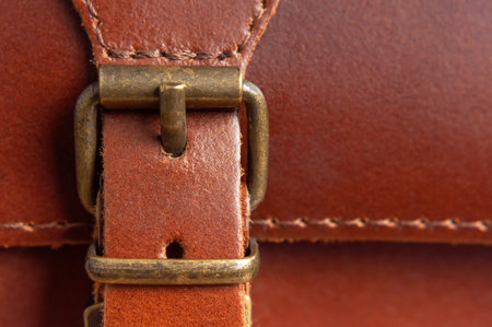 Closeup of a leather texture with metal buckle