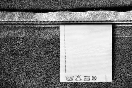 Washing instructions clothes label on black leather background