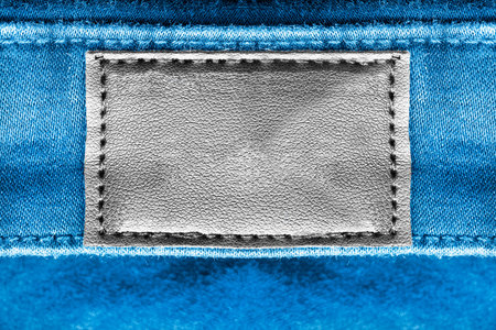 Denim texture with leather label tag for background