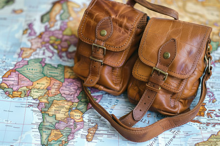 Two Brown Leather Bags Resting on a World Map