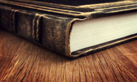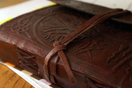 close-up of an old leather-bound book