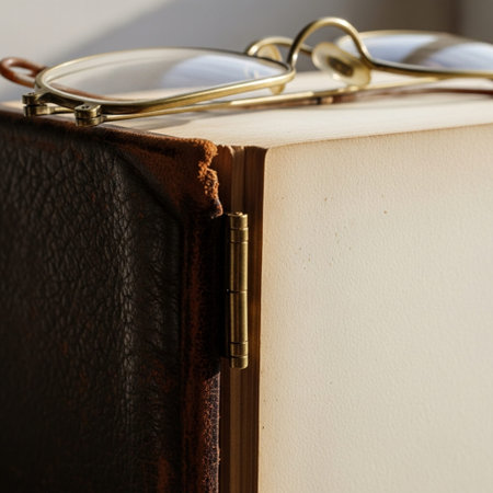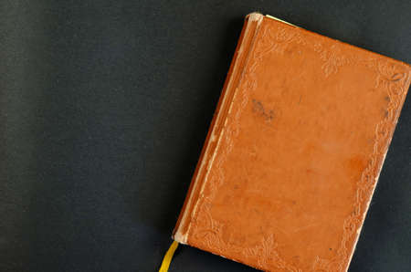 The result of a professional shooting of a book with a leather and embossed cover and a bookmark on it
