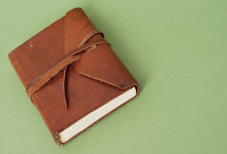 Old Leather Journal on a Green Background.