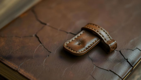 a brown book with a leather strap on it