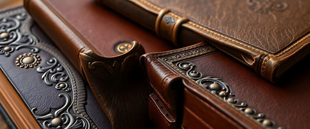 Stacked leather-bound journals, vintage and timeless