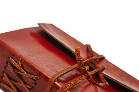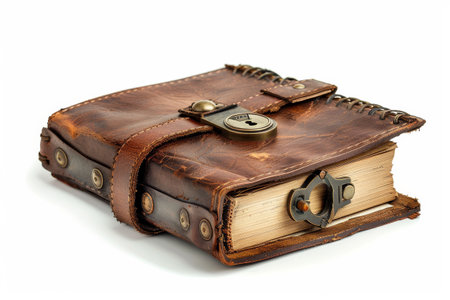 aged leather book cover design with closure belts captured isolated