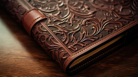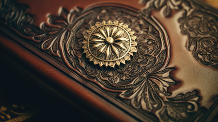 Ornate vintage book cover with intricate embossed floral designs. That the image is generated using AI.
