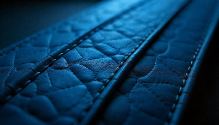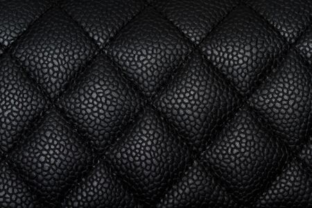 Close up of a detail of the stitches of a car seat in a black handmade leather upholstery. Useful as a background