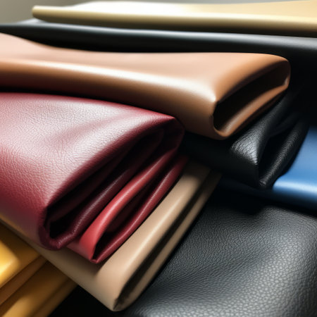 Explore vibrant samples of artificial leather in rich colors like orange, navy, and burgundy-ideal for designers and craft enthusiasts seeking inspiration.