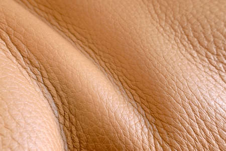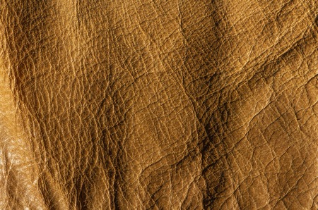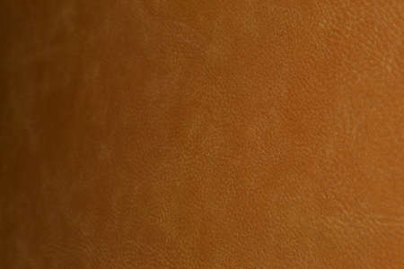 Texture of genuine leather, fragment of the yellow brown accessory with slight fold close-up, background
