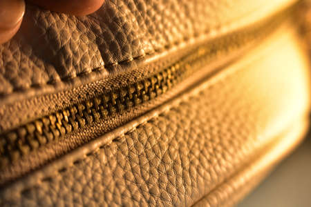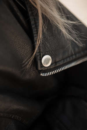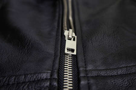 Stylish rock leather jacket with metal zipper, closeup. fashion woman