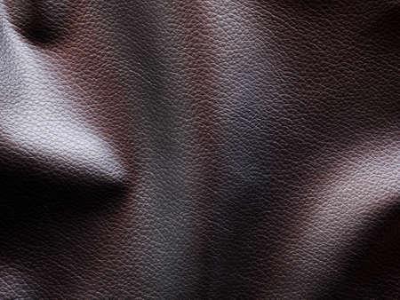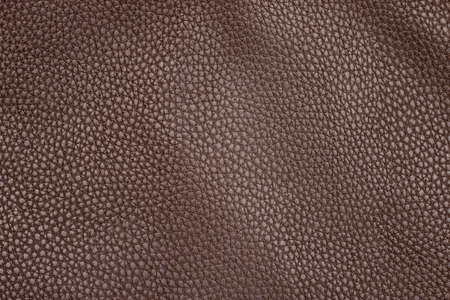 Crumpled brown leather texture, convex background with curves, textile, copy space. Genuine leather background.