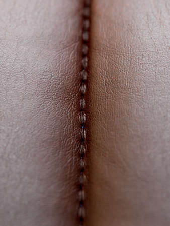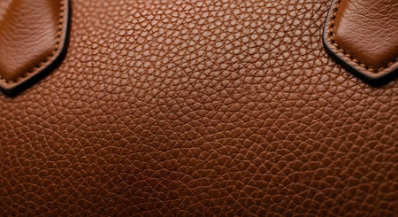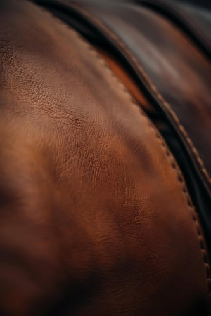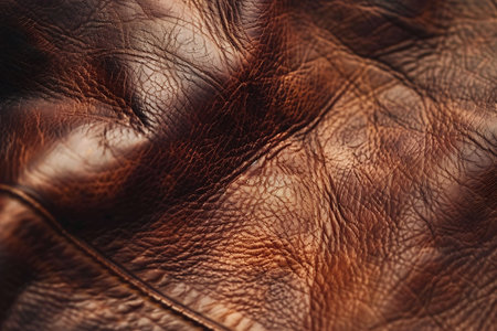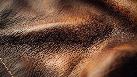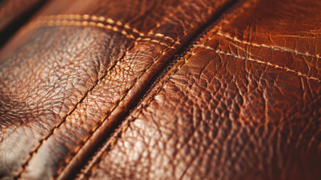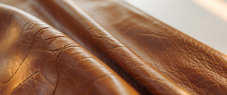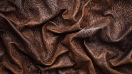 Close-Up of Luxurious Brown Leather Textured Detail, Soft Folds, and Fine Stitching.