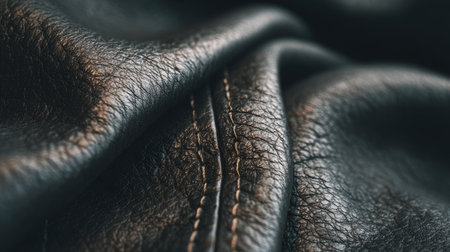 This image showcases an intricate close-up of soft black leather, revealing elegant stitches and a rich texture that embodies craftsmanship and luxury.