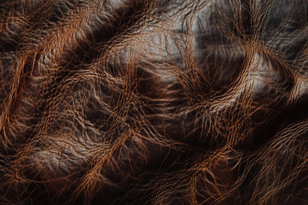 Top view of rich brown leather texture, epitomizing elegance and luxury, perfect for fashion brands and interior design.