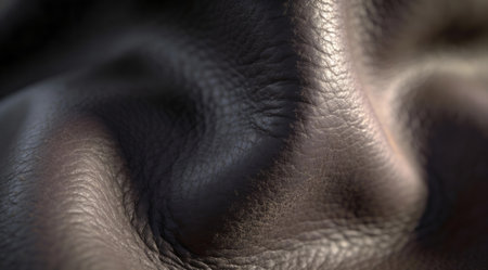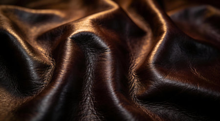 A creative digital illustration depicting Commercial digital art featuring supple dark leather texture with natural creases, tight close-up shot, warm ambient glow revealing details, mysterious indulgent mood, espresso brown and shadow black. This AI-generated artwork features unique visual elements suitable for various commercial and editorial applications. AI-generated illustration.