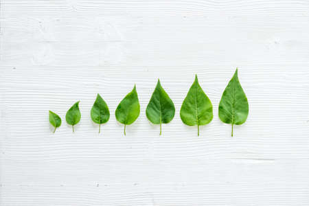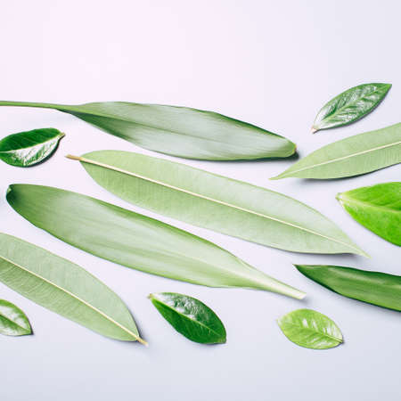 Green leaves on nature background. Top view, green color gradation. Daun tropis
