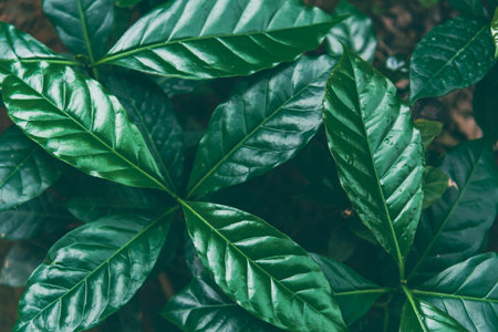 Green leaves background.Green leaves color tone dark in the morning.Tropical Plant in Thailand,environment,good air,fresh.photo concept nature and plant.