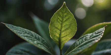 Close-up of vibrant green leaves in natural sunlight, nature and freshness concept