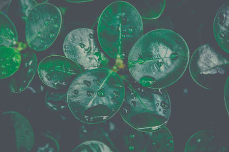 rainforest wet foliage after rain with water drops on leave moody green color nature photo