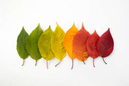 Autumn leaves rainbow color gradient. Autumn season change concept.