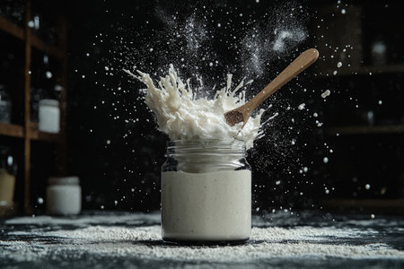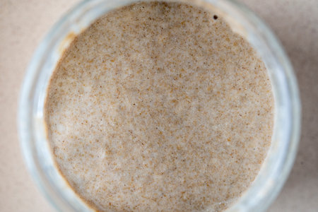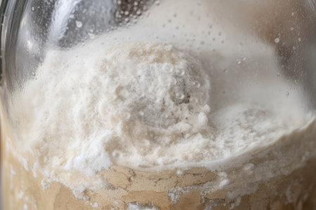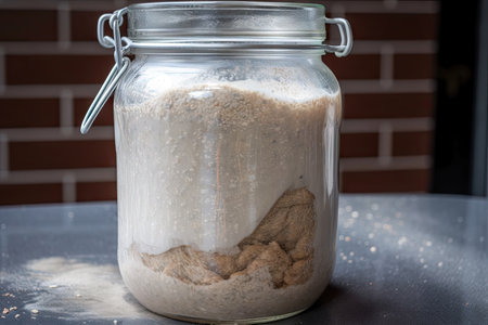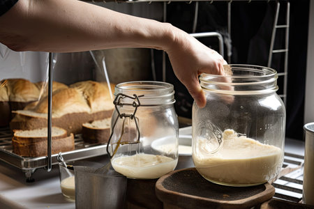 sourdough starter being fed and nurtured in warm, draft-free environment, created with generative ai