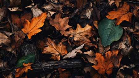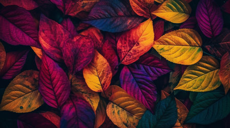 Generative AI : multicolor autumnal fallen leaves