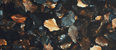 closeup of wet autumn leaves on forest ground, created with generative ai