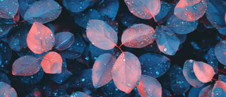 Dew drops glisten on vibrant leaves in a seamless natural pattern with rich colors