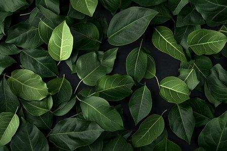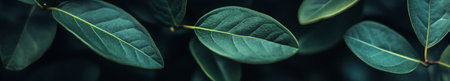 A moody close-up of green leaves against a dark background, highlighting their texture and natural beauty. The image is perfect for themes related to nature, botany, and minimalism.