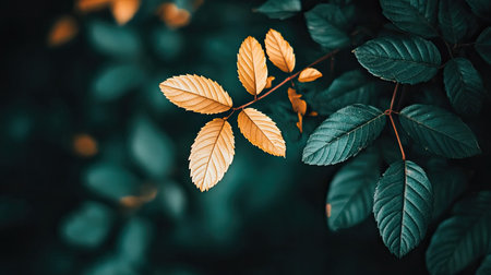 This captivating image features golden orange leaves intertwined with lush green foliage, highlighting nature's stunning contrast and beauty in detail.