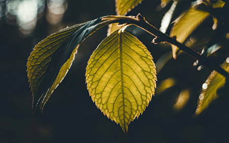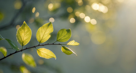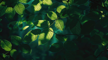 AI Generated. A leafy green tree branch with leaves that are shining in the sunlight