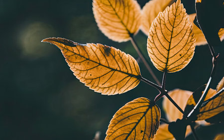 Colorful autumn leaves on a dark background. Selective focus.
