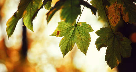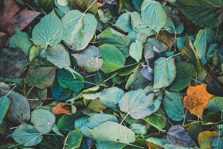 Autumn multicolored yellow red and green leaves background. Wallpaper and background of autumn beautiful leaves of different colors