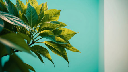AI Generated. Lush Green Leaves on a Turquoise Background