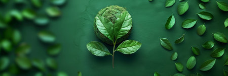 Planet on green background with copy space concept for Earth Day. Banner. With Generative AI technology.
