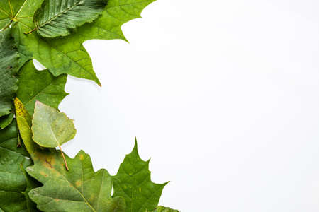 Green leaves border isolated on white background.