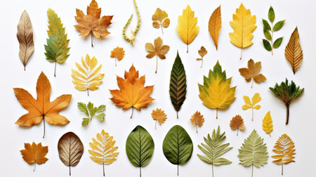A visually appealing compilation of diverse leaves showcasing an array of colors and textures. This arrangement highlights nature's beauty and organic design.