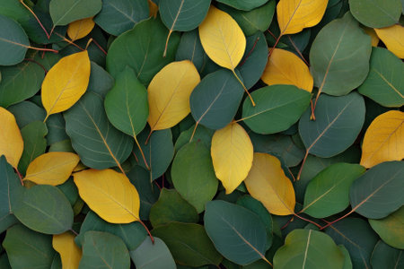 A close up of a bunch of leaves that are yellow and green, AI