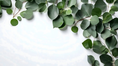 Green eucalyptus leaves arranged as a border on a white background. Perfect for design or presentation.