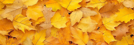 Autumn Leaves Collage Representing Seasonal Change.Close-up of a densely packed array of autumn leaves in various shades of yellow, orange, and red, highlighting the rich colors of the fall season.